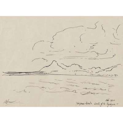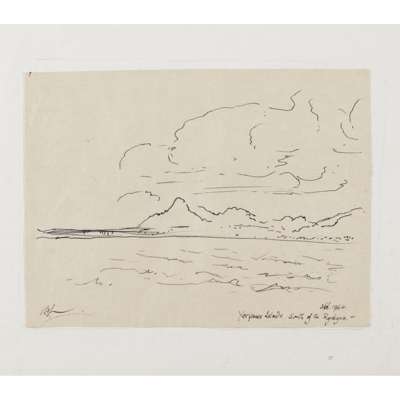 initialed in pen (lower left), titled and dated (lower right), pen and ink on paper