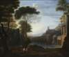 A CLASSICAL LANDSCAPE WITH FIGURES AND DISTANT RUINS