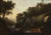 A WOODED RIVER LANDSCAPE WITH FISHERMEN