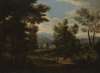 A WOODED CLASSICAL LANDSCAPE WITH FIGURES ON A PATH
