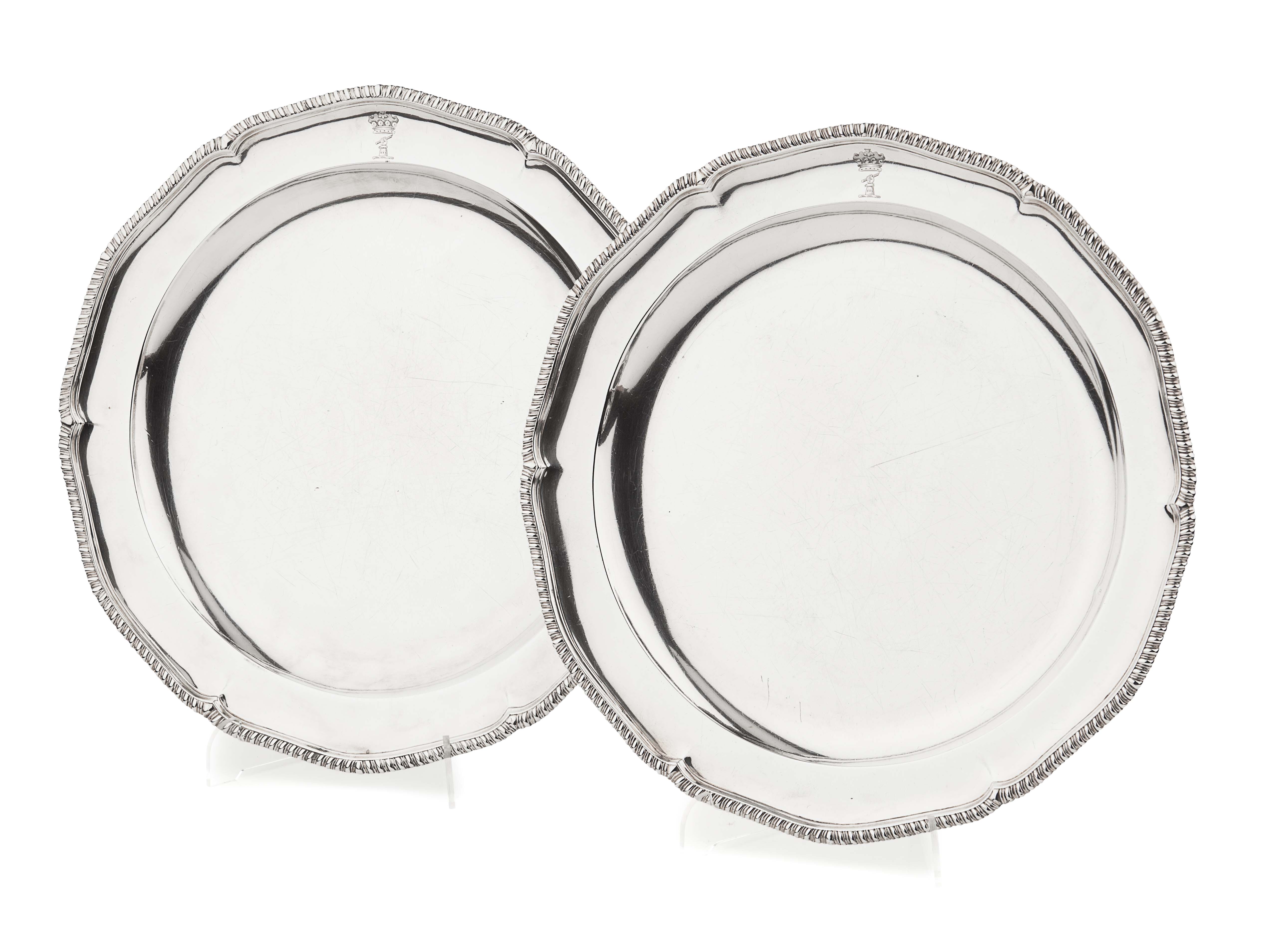 of circular form, gadroon border, engraved crest to the bouge (2)
