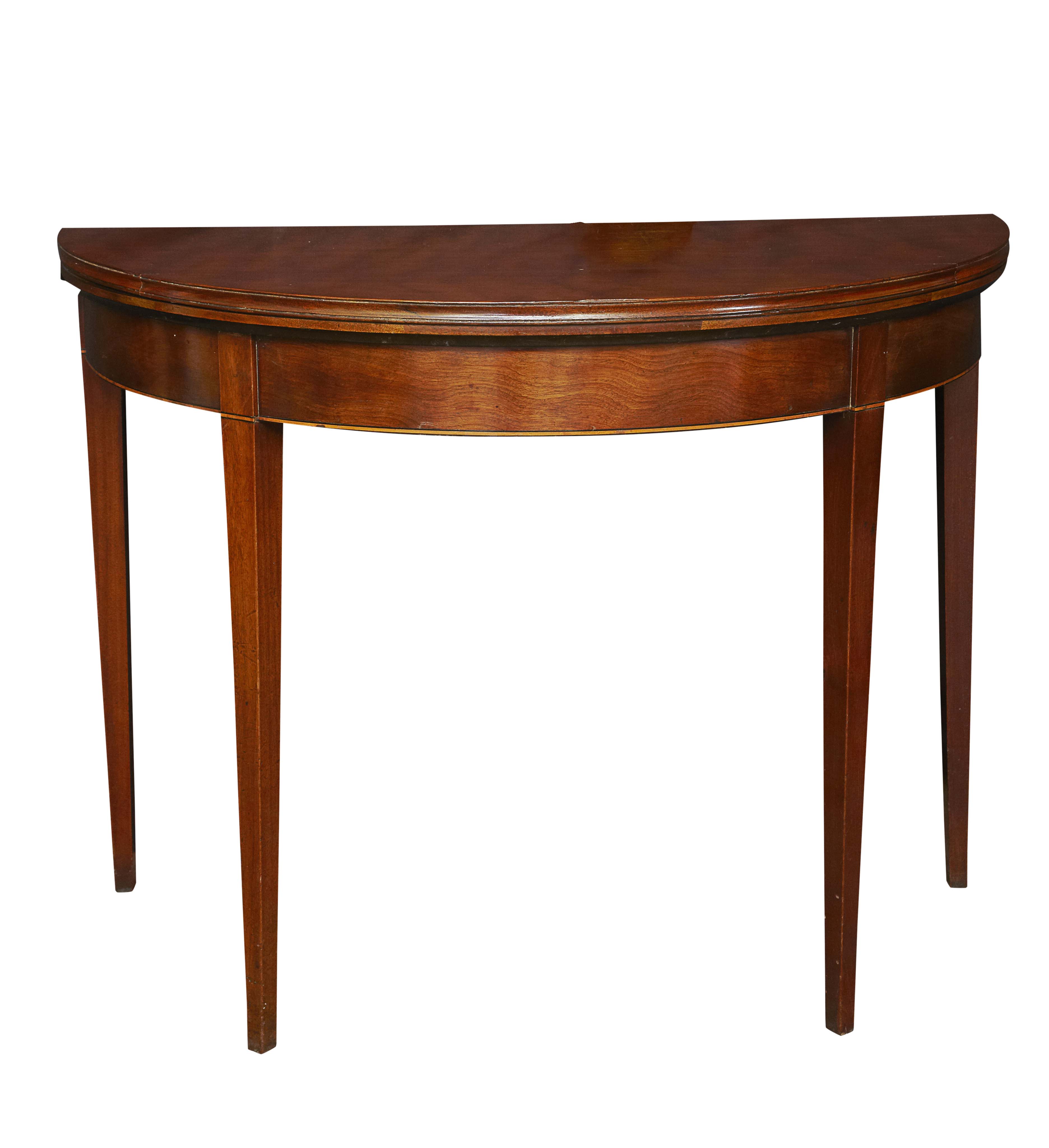 GEORGE III MAHOGANY DEMI LUNE CARD TABLE