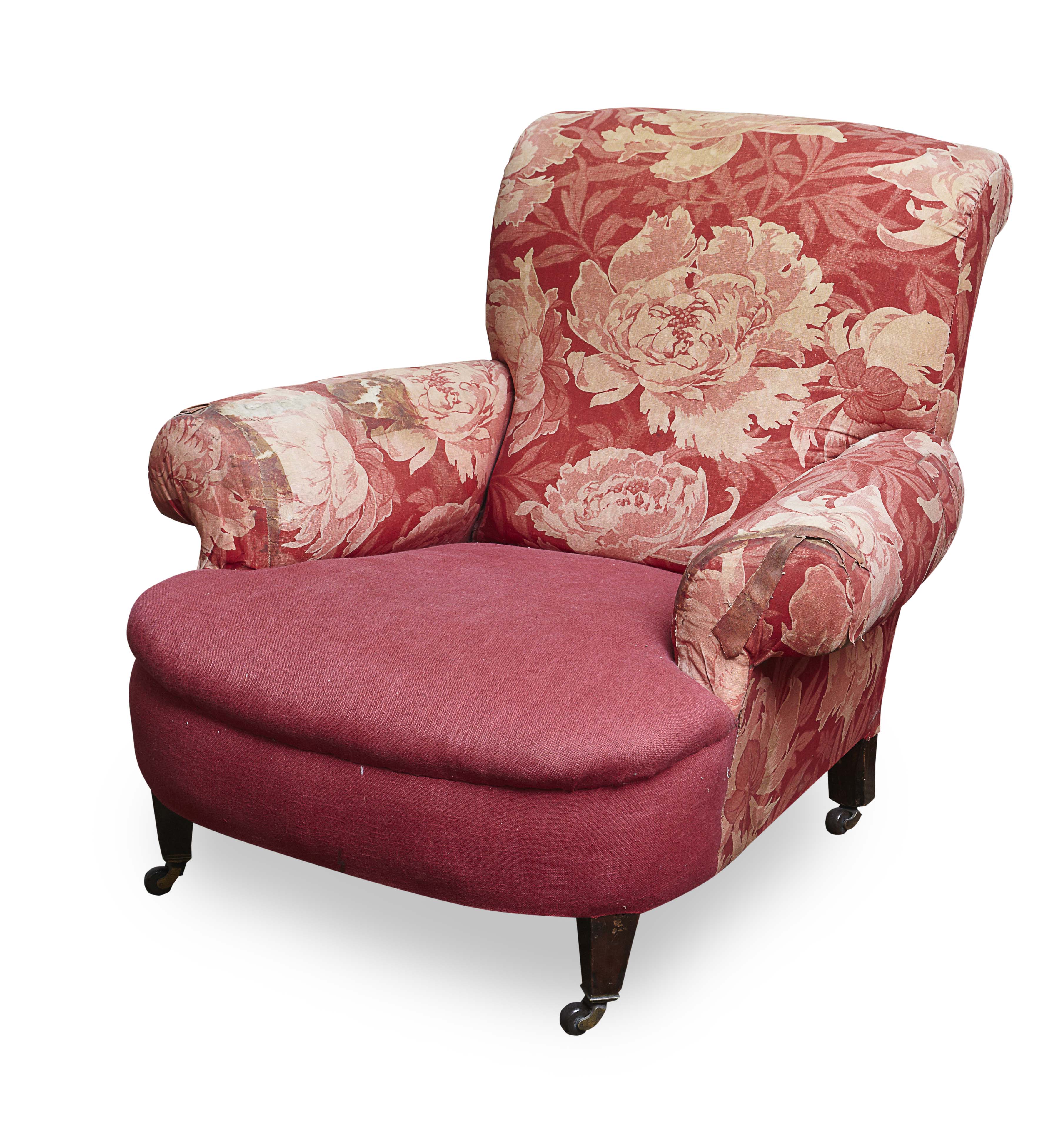 TWO EDWARDIAN UPHOLSTERED EASY ARMCHAIRS