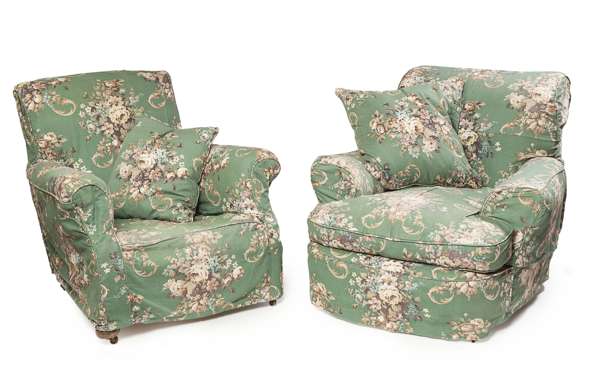 TWO VICTORIAN UPHOLSTERED EASY ARMCHAIRS