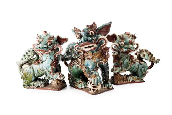 THREE CHINESE GLAZED POTTERY ROOF TILES