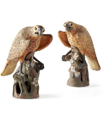 PAIR OF CHINESE GLAZED AND BISQUE POTTERY EAGLES