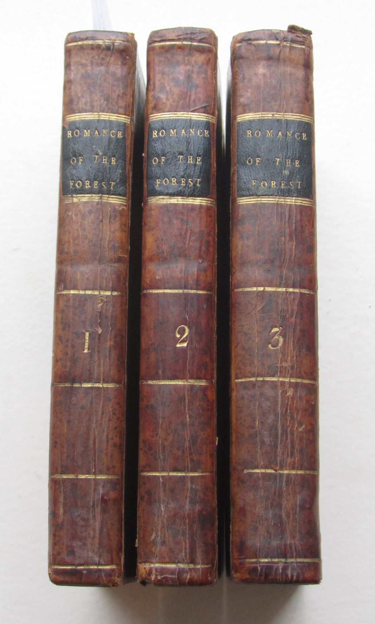 London, 1791. First edition, 3 volumes, 8vo, contemporary calf, lacks half-titles; RADCLIFFE, ANN. THE MYSTERIES OF UDOLPHO. 1803. 4 vol., 12mo, contemporary half calf; EDGEWORTH, MARIA. TALES OF FASHIONABLE LIFE. 1809. 6 volumes, contemporary half calf (13)
