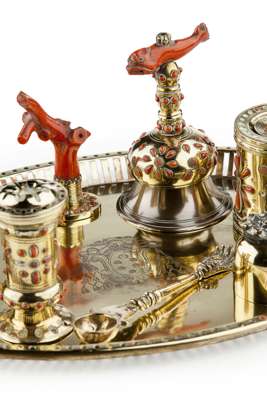 For a similar desk set, see Christie's New York, 7th June 2013, lot 416.