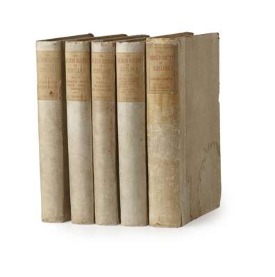 London, 1899. 4 volumes, 4to, presentation copy from author, plates, original parchment-backed boards, boards somewhat soiled & stained; [IDEM] THE DEER FORESTS OF SCOTLAND. 1896. 4to, 1/500 copies, plates, parchment-backed boards, rubbed and soiled (5)