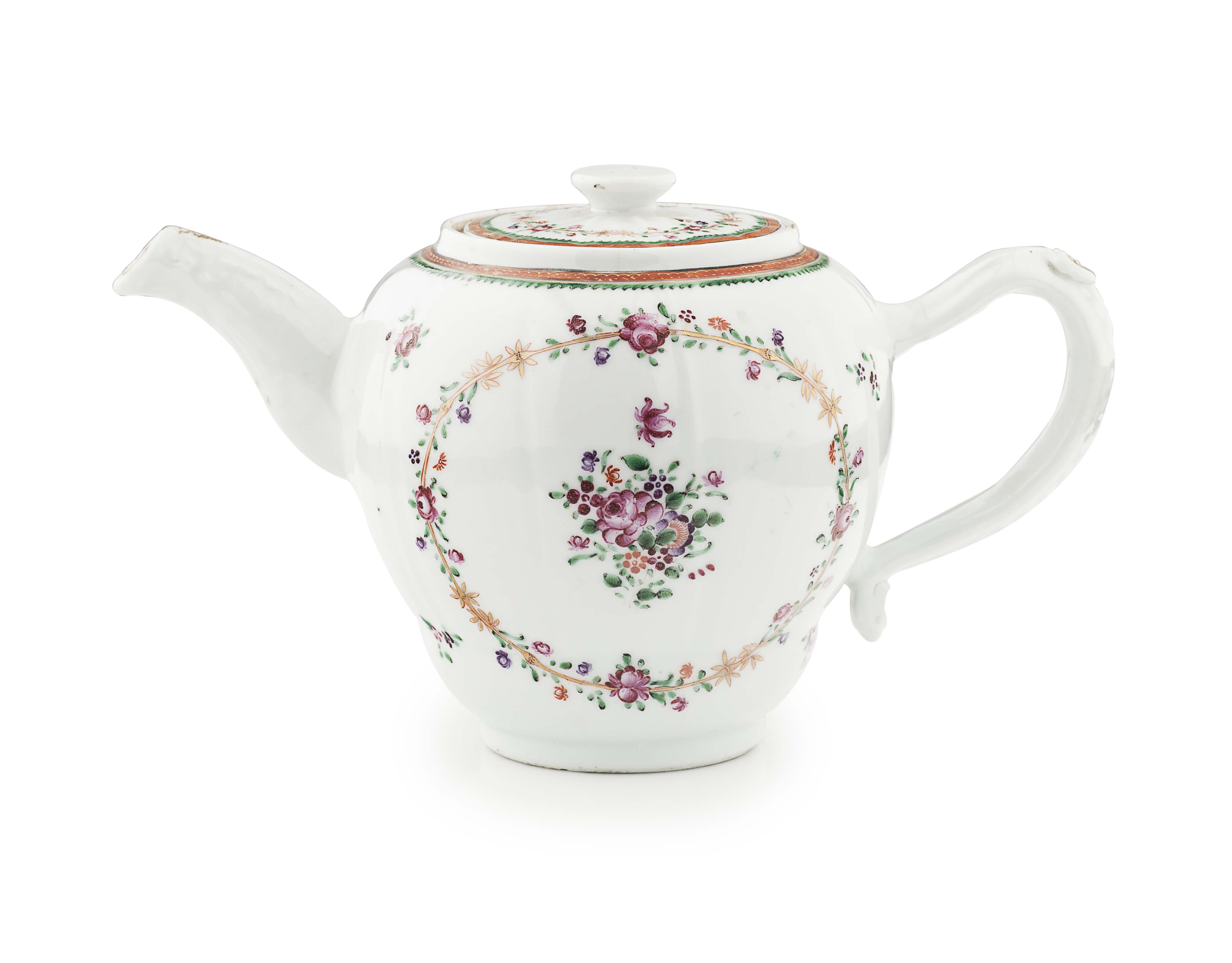 of lobed baluster form painted with flower sprays and festoons enriched with gilt