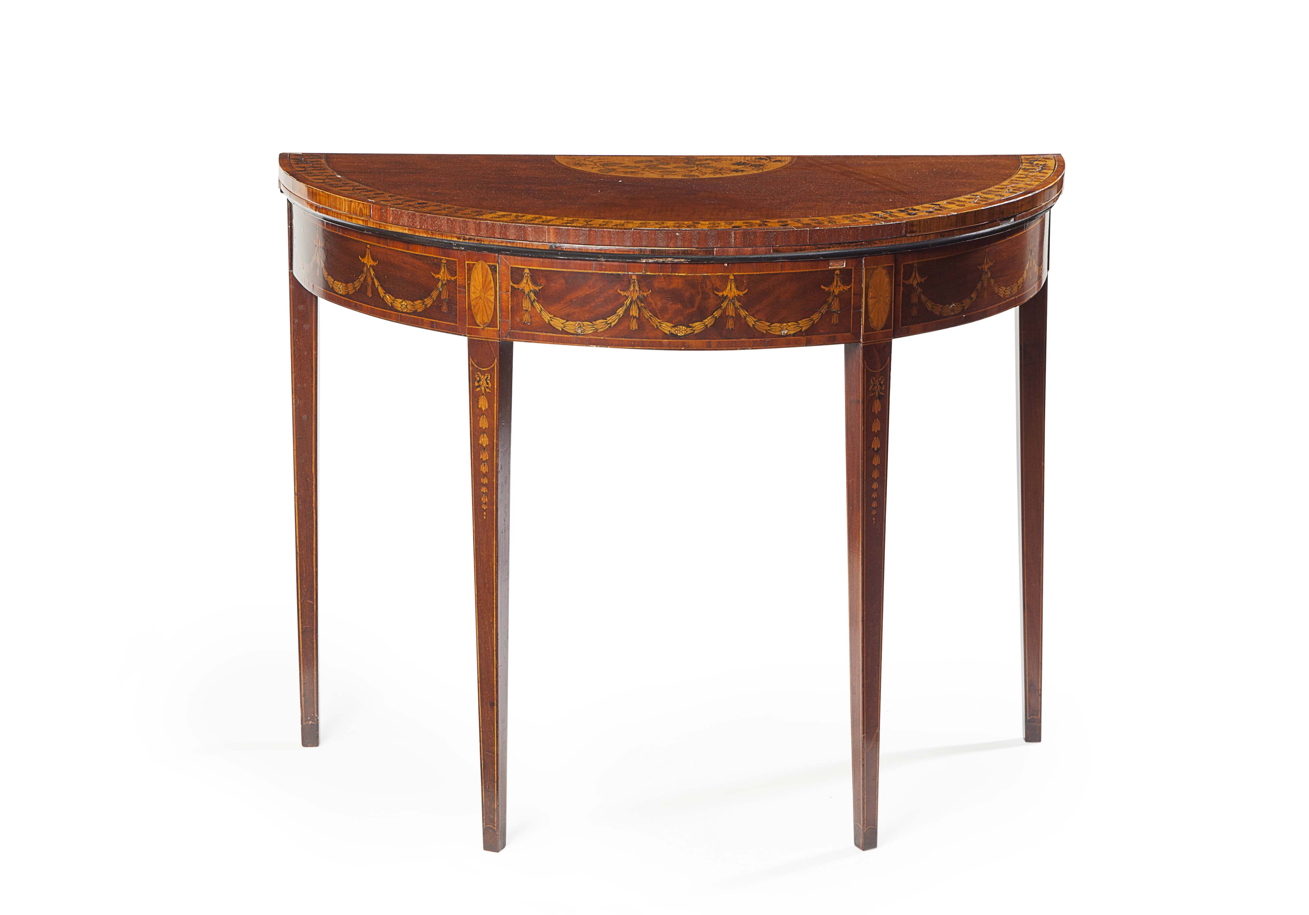 GEORGE III MAHOGANY AND INLAID DEMI-LUNE CARD TABLE