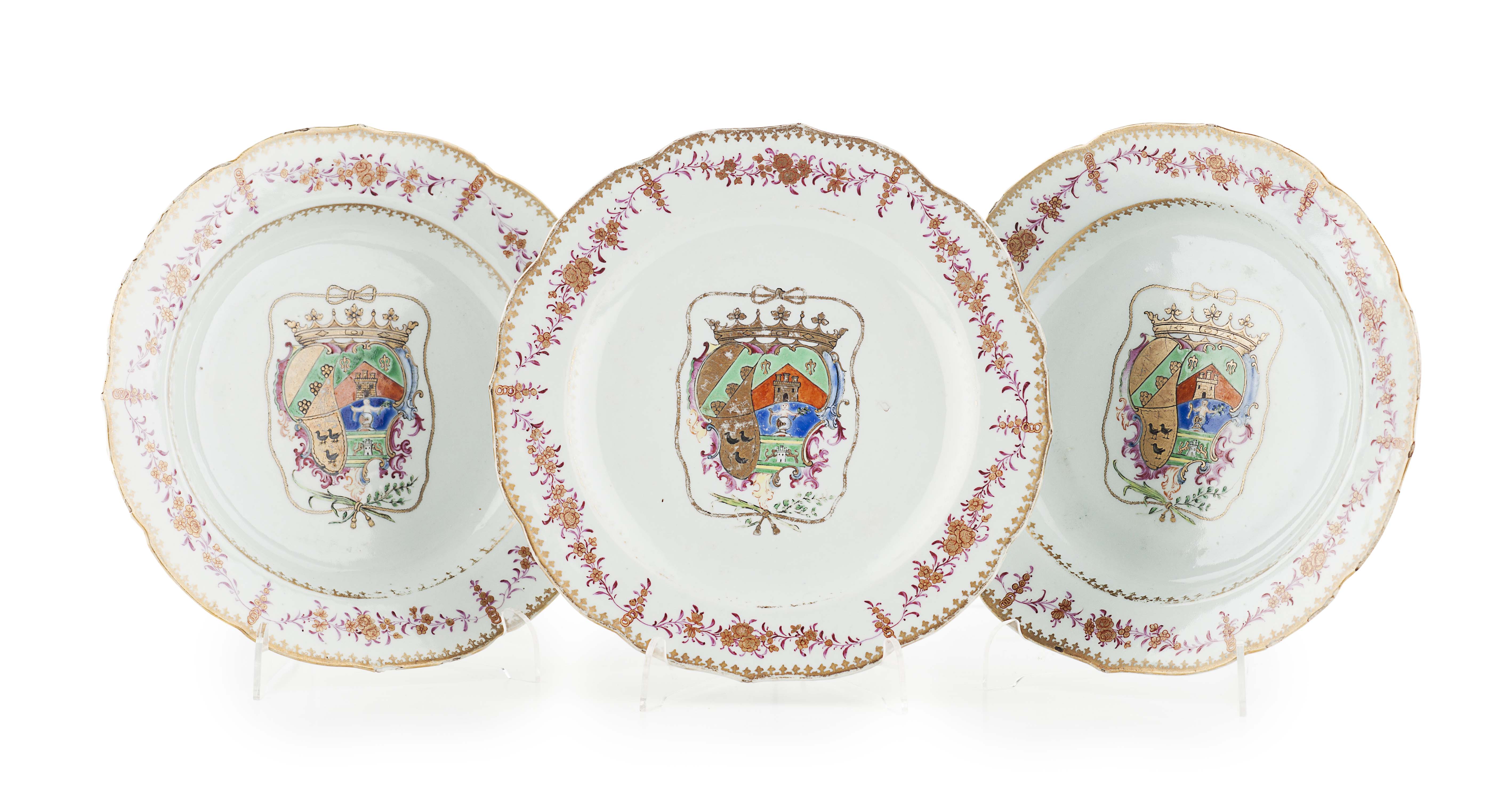 SET OF THREE CHINESE EXPORT ARMORIAL PORCELAIN PLATES