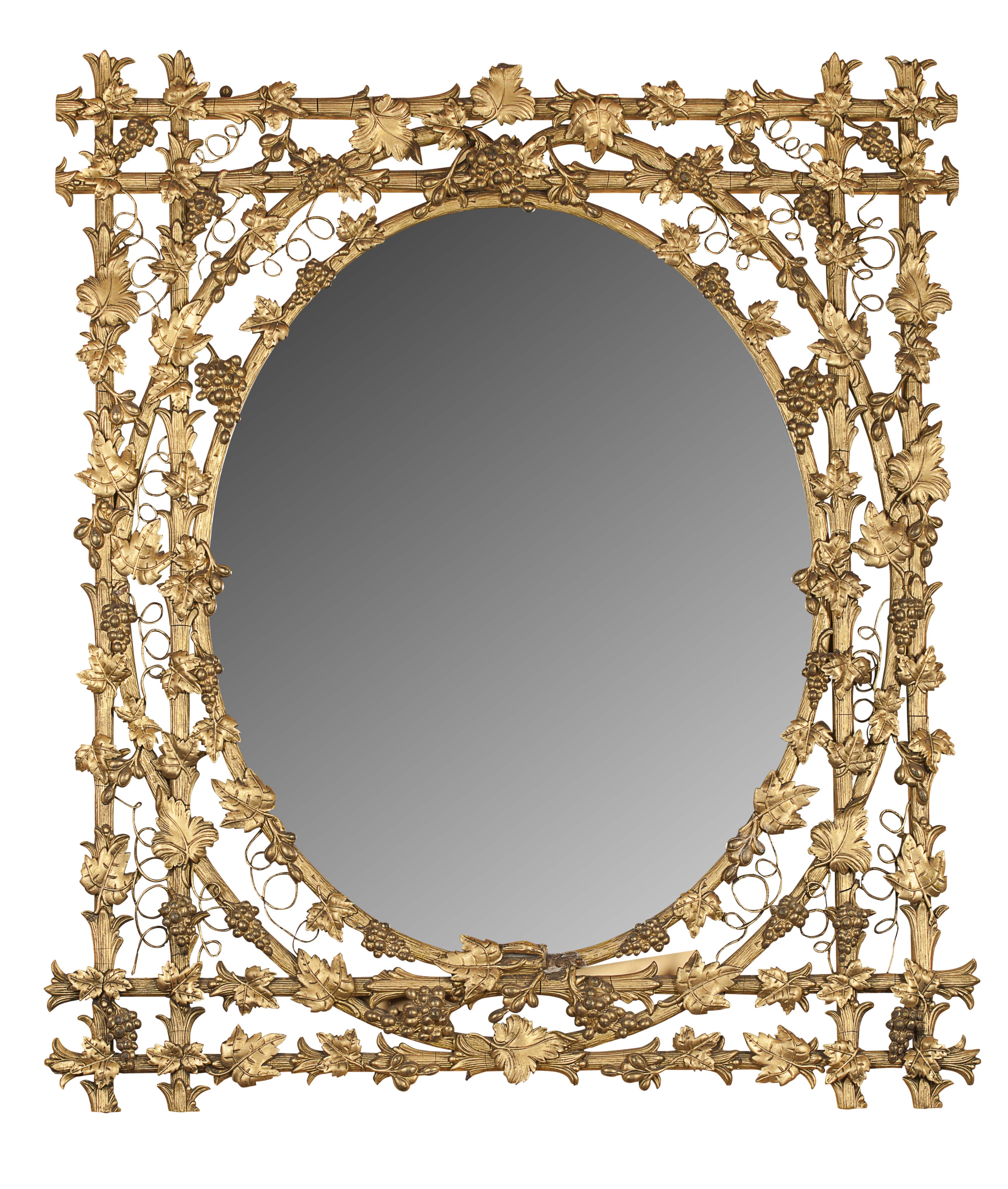 the oval mirrored plate in foliate and fruiting vine and cane openwork frame