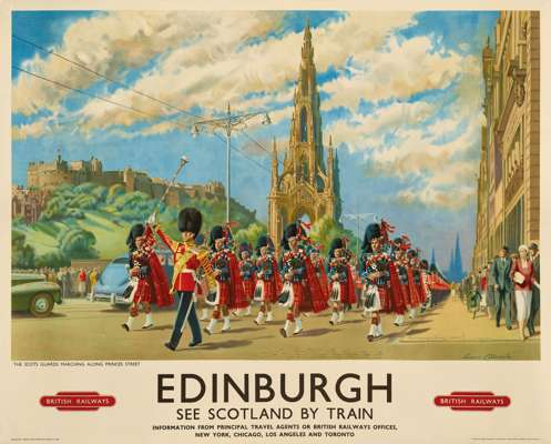 Edinburgh, The Scots Guard Marching Along Princes Street