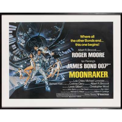 James Bond poster, 1979, Eon Productions, British Quad signed by Roger Moore, condition A-; backed on linen, framed