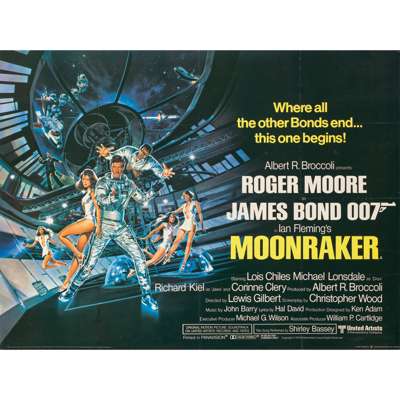 James Bond poster, 1979, Eon Productions, British Quad signed by Roger Moore and Richard Kiel "JAWS", condition A-; backed on linen