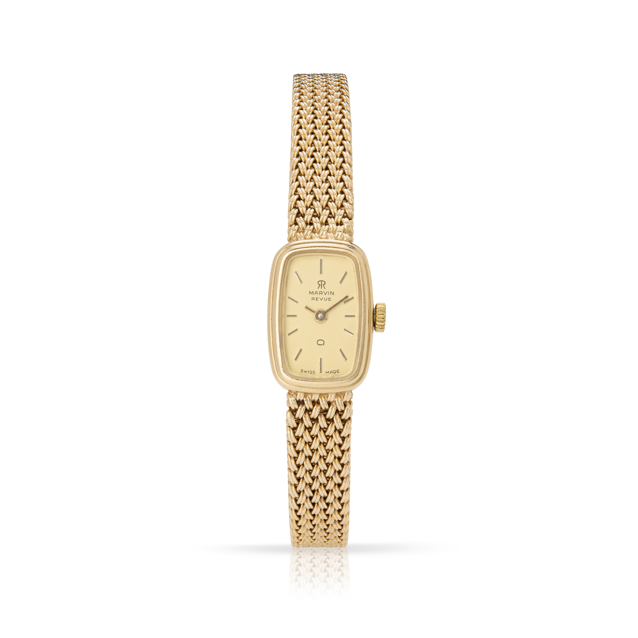 Marvin. A Ladies 9k yellow gold rectangular bracelet watch