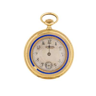 Swiss. An 18k gold and enamel pocket watch