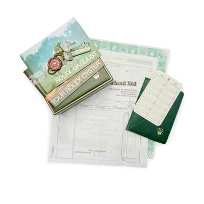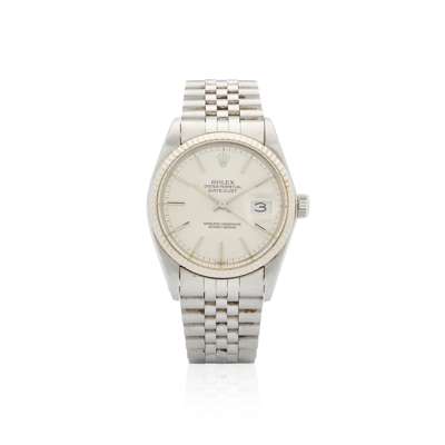 Cal. 3035 self-winding 27 jewel movement, silvered dial with applied steel baton indexes, outer tritium dots, date aperture under magnifying lens, steel/tritium baton hands, stainless steel case with screw-down reverse and Oyster crown, white gold fluted bezel, on fitted stainless steel Rolex Ref.62510 H Jubilee bracelet with 555 endlinks, clasp date code G (1982). Accompanied by the original Rolex presentation case, DateJust booklet, 1986/87 Rolex calendar card, numbered plastic wallet, Oyster booklet, original typed and punch numbered Rolex certificate dated 10th October 1986 from Watches of Switzerland, Princes St, Edinburgh, Chronometer tag and numbered sales tag, original Watches of Switzerland sales receipt for £938 dated 10/10/86