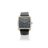 Cal.1002, self-winding movement, anthracite grey dial with applied steel baton indexes, white baton hands, centre seconds, date aperture, stainless steel cushion shape case, on leather strap. Case, dial and movement signed.