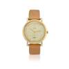 Cal.361 hand-wound movement, textured silvered dial with applied indexes, gilt metal circular case with straight lugs, on tan leather strap.