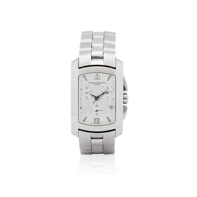 Quartz movement, silvered dial, subsidiary dials, date aperture, index hands, stainless steel rectangular case with numbered reverse secured by screws, on fitted stainless steel Baume & Mercier bracelet with concealed double folding clasp. Accompanied by Baume & Mercier presentation case and two additional bracelet links.