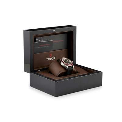 Cal.2824-2 self-winding 25 jewel movement, matt black dial with applied luminous bot, baton and triangle indexes, luminous ‘Snowflake’ hands, centre seconds, stainless stee case with screw-down reverse and crown, unidirectional rotating burgundy bezel calibrated to 60 minutes, on fabric NATO style strap with stainless steel buckle. Accompanied by a Tudor presentation case, Heritage Black Bay instructions, guarantee booklet and stamped Tudor warranty card dated 18.04.2017.