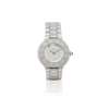 Quartz movement, silvered dial, blued steel hands, stainless steel case with Roman numerals to bezel, cabochon set crown, signed and numbered reverse, stainless steel Cartier bracelet, folding clasp.