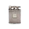 Mechanical hand-wound 15 jewel Swiss movement, square silvered dial, rectangular engine-turned case, hinged front, screw-in base for liquid fuel, flint with hinged cover. Movement signed, case numbered. Base numbered 900.