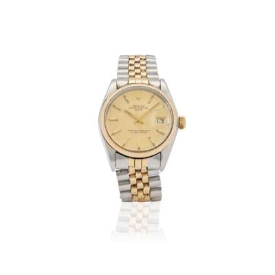 Cal.1570 self-winding 26 jewel movement, champagne dial with applied baton indexes, outer tritium dots, date aperture, baton hands, stainless steel Oyster case with screw-down reverse and crown, fluted gold bezel, on fitted stainless steel and gold Rolex Ref.625223H.18 bracelet with clasp stamped N11. Accompanied by a later Rolex Ref.16233 presentation case with relevant booklets.