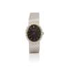 Replacement quartz 7 jewel movement signed Maurice Lacroix, black dial, 18k white gold oval case with textured bezel to integrated 18k white gold textured bracelet.