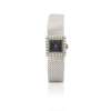 Cal. 485 hand-wound movement, squared blued dial, square 18k while gold case with diamond-set bezel to integral 18k white gold bracelet. Case, dial and movement and clasp signed. Inner case with London hallmark.