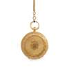 Mechanical key-winding movement with cylinder escapement, white enamel dial, black Roman numerals, blued steel Breguet style hands, hinged circular 18k gold case numbered to the inside and cuvette, case stamped FM within rectangular cartouche, finely decorated covers. Accompanied by a key, short chain and a box.