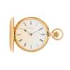 Swiss hand-wound movement, white enamel dial with Roman numerals, blued steel hands, circular 18k gold hinged case with finely engraved dog to the cover and monogram to reverse, brass cuvette signed J.W.Benson 62&64 Ludgate Hill, London, time adjustment pin to the band. Dial and case signed.