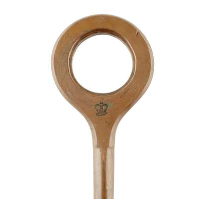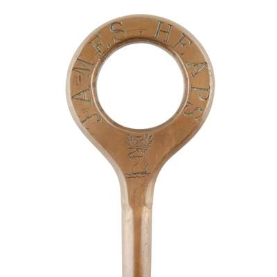 with pierced and flatted circular handle and tapering shaft, inscribed, 'JAMES HEAPS' with stamped crown and stag's head motifs