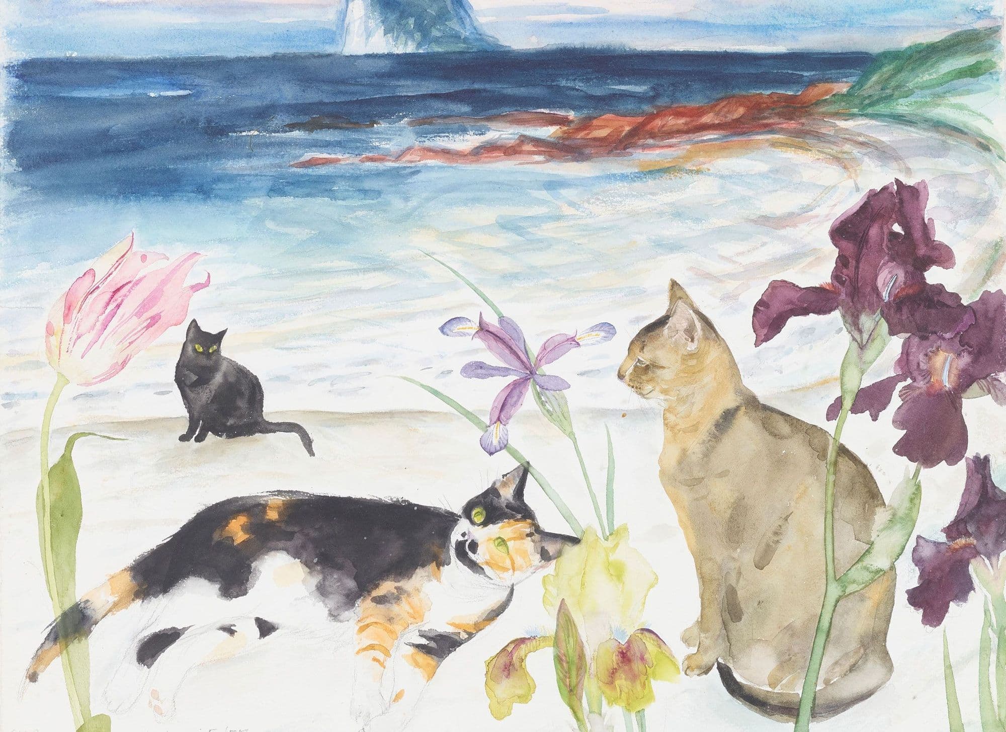 Illustrated: DAME ELIZABETH BLACKADDER O.B.E., R.A., R.S.A., R.S.W., R.G.I., D.Litt (SCOTTISH 1931-2021) | CATS ON SHORELINE, 1990