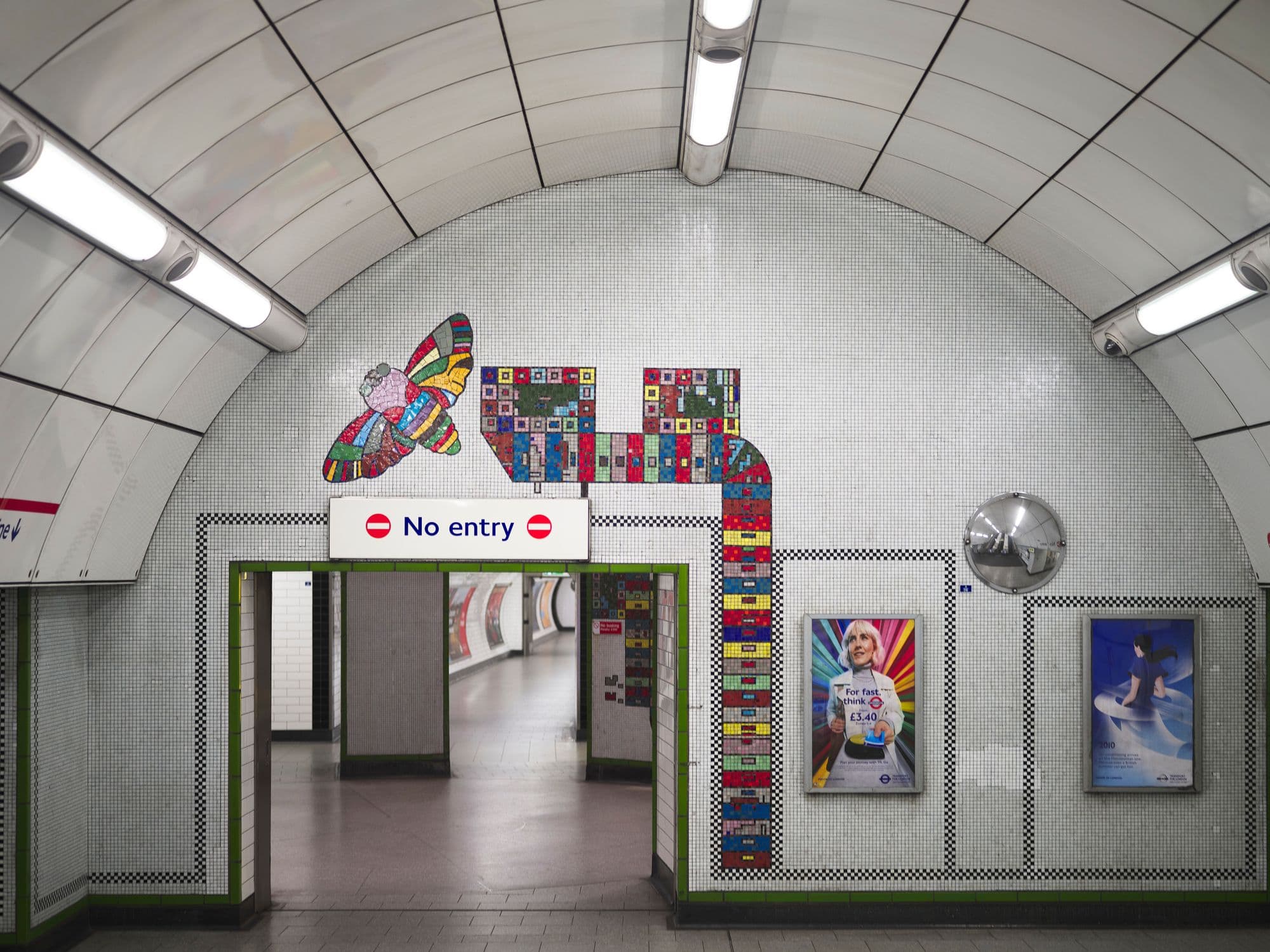 As Tottenham Court Road station often serves as a meeting point for those heading towards Soho and the West End, Paolozzi’s Moth depicts a restless, nocturnal creature – fittingly symbolic of the nightlife that surrounds the area. For millions of travellers, one of Paolozzi’s Moths is among the last artworks they see before leaving the station.