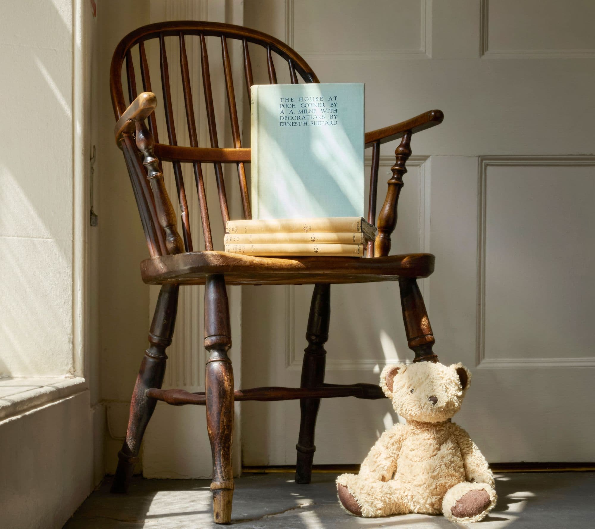 Winnie-the-Pooh appears in When We Very Young as the anonymous teddy who ‘however hard he tries / Grows tubby without exercise’. The book that bears his name appeared in 1926, and was followed in 1927 by a second book of children’s verse, Now We Are Six, with The House at Pooh Corner, published in 1928, completing the set.