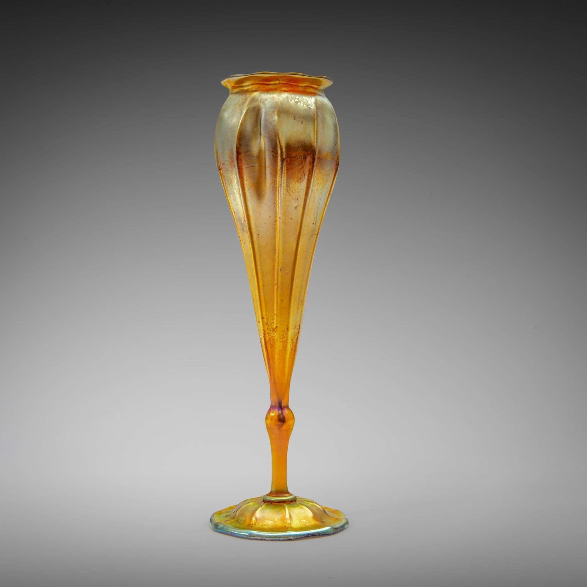 Some of the techniques employed had only recently been rediscovered, such as enamelling inspired by medieval Islamic work, while Roman glass stimulated a rejuvenation of interest in iridescent surface finishes.