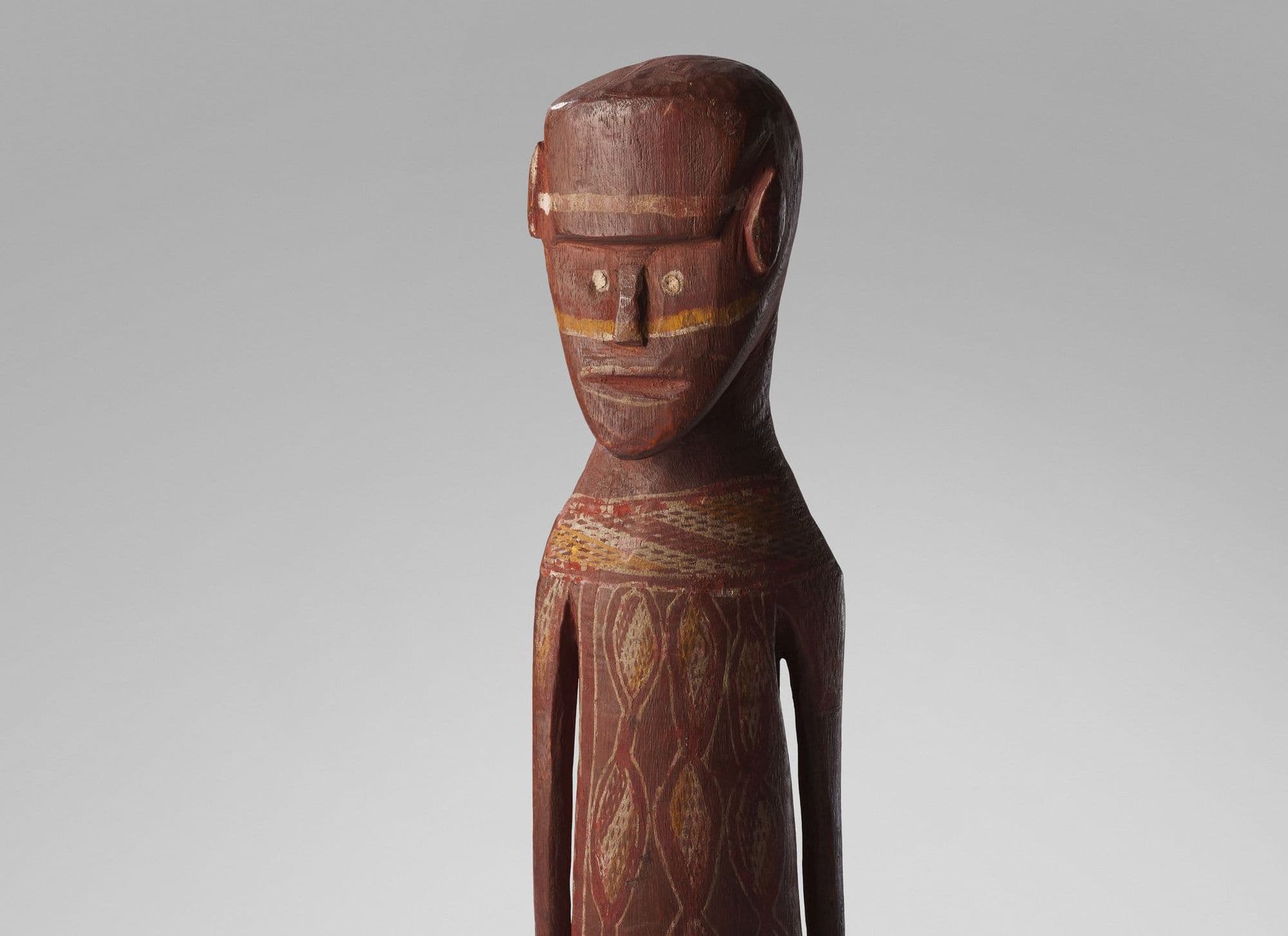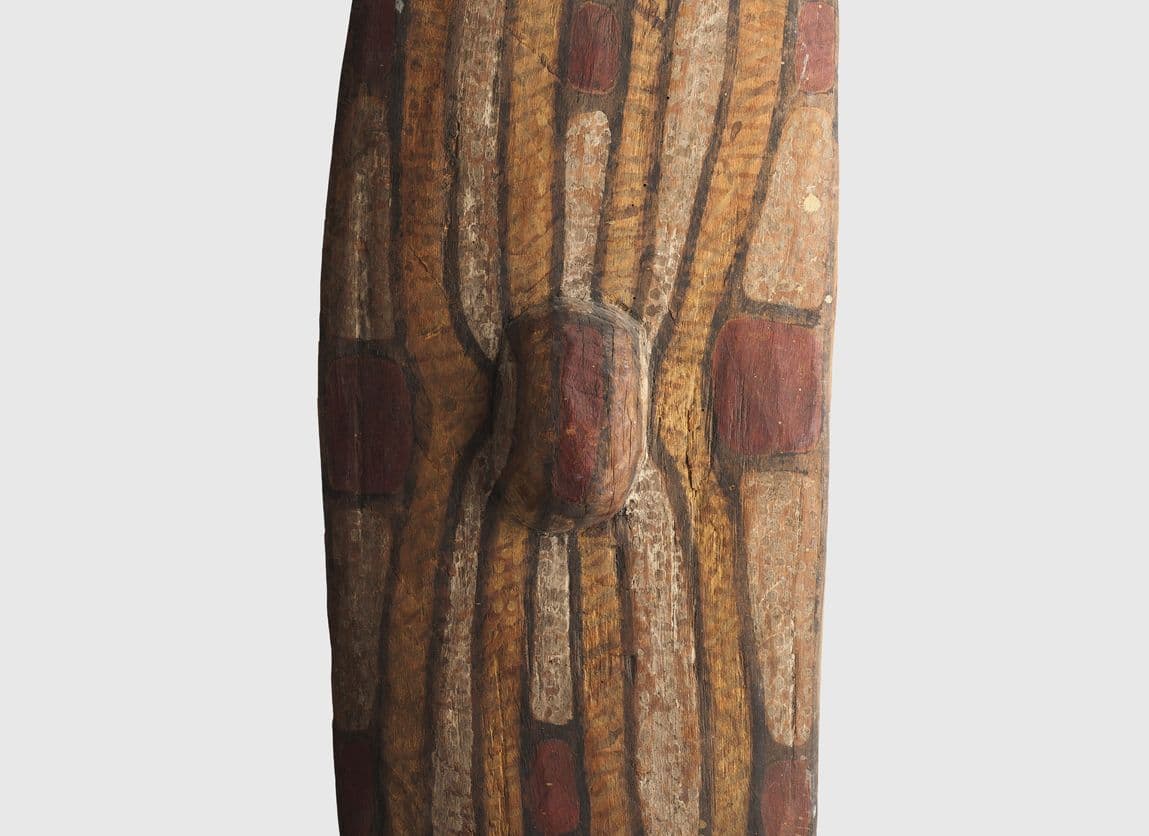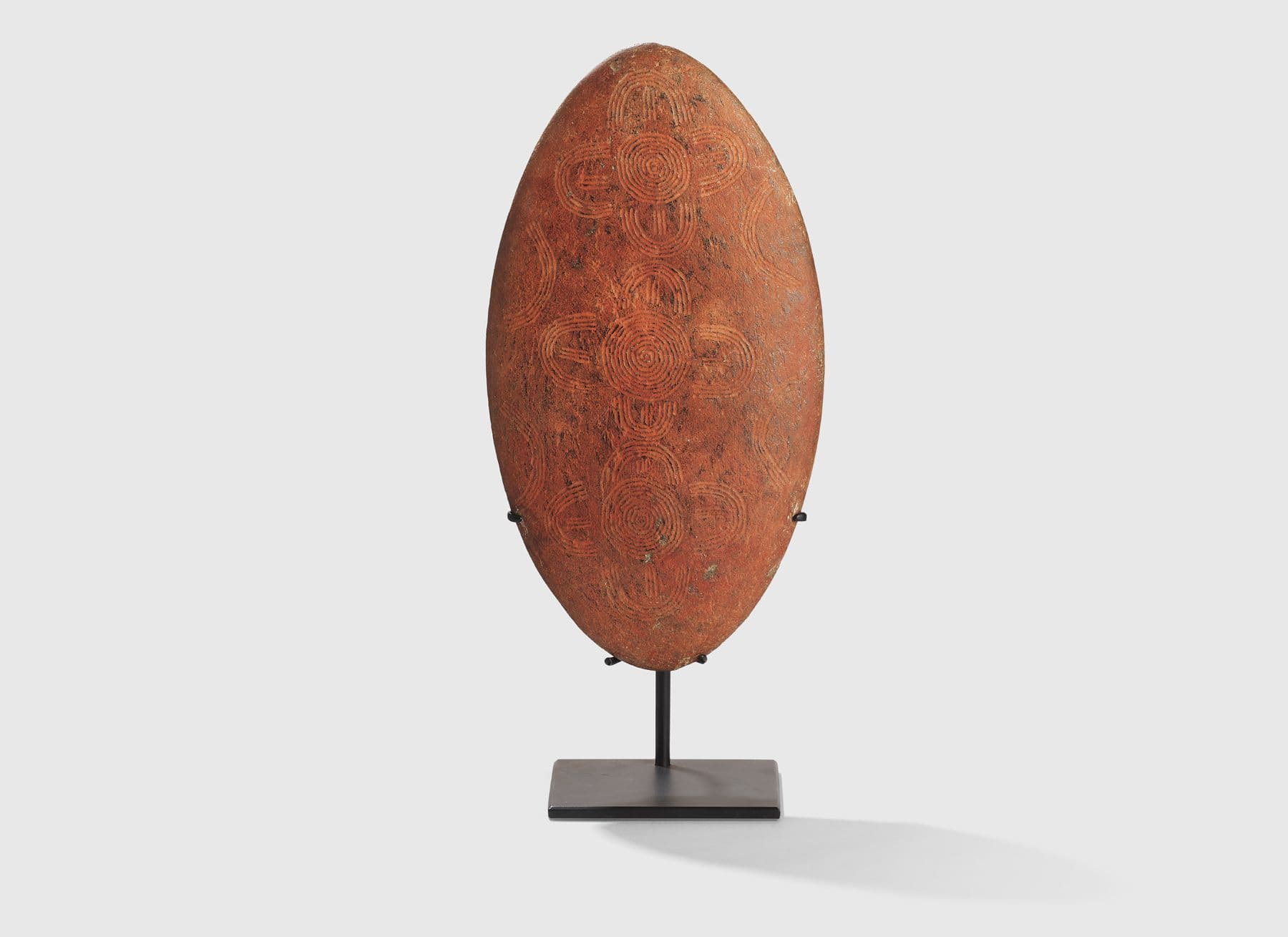 Shields from across Australia show great diversity in form, design and meaning. Their shapes, materials and decorations varied between regions, reflecting local environments and cultural traditions. In the rainforests of Queensland, broad shields were carved from the buttress roots of fig trees and painted with bold totemic designs in natural pigments. In contrast, the smaller wunda shields of Western Australia were finely crafted and decorated with incised geometric patterns. In the south east, narrow hardwood shields were engraved with complex designs such as zigzags, chevrons, circles and spirals. These patterns often represented rivers, pathways or ancestral stories, linking the shield to Country and to the people who made and used it.