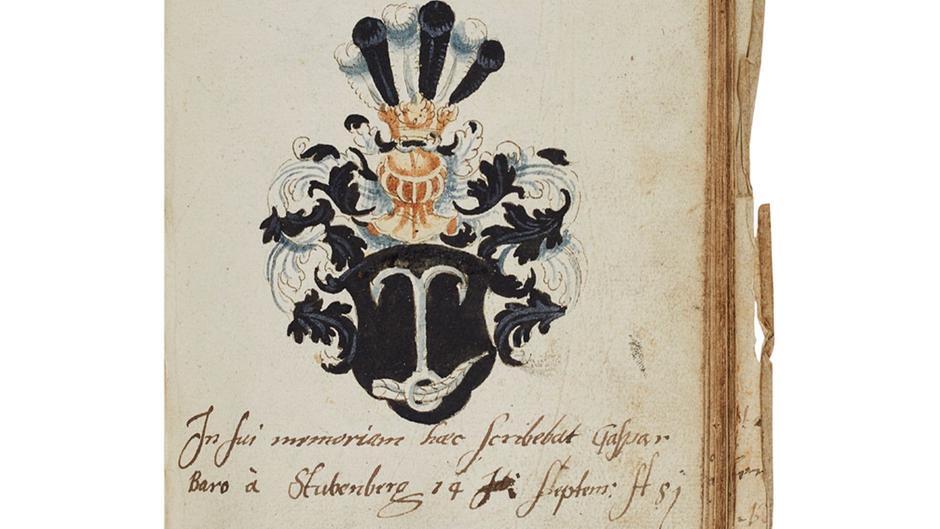 Between 1581 and 1585 Graham created an album amicorum, literally a ‘book of friends’, to record meetings with acquaintances whilst travelling in Europe. The coats of arms and mottoes of foreign noblemen recorded in this manuscript volume, to be offered in our forthcoming Rare Books, Manuscripts, Maps & Photographs auction on 11 October, attests to David Graham's travels and the connections he formed. One page bears the slogan Initium Sapientiaw Timor Domini and states that the entry was written in Paris. Another inscription is signed Ingolstadt. Graham returned to Scotland in 1583.