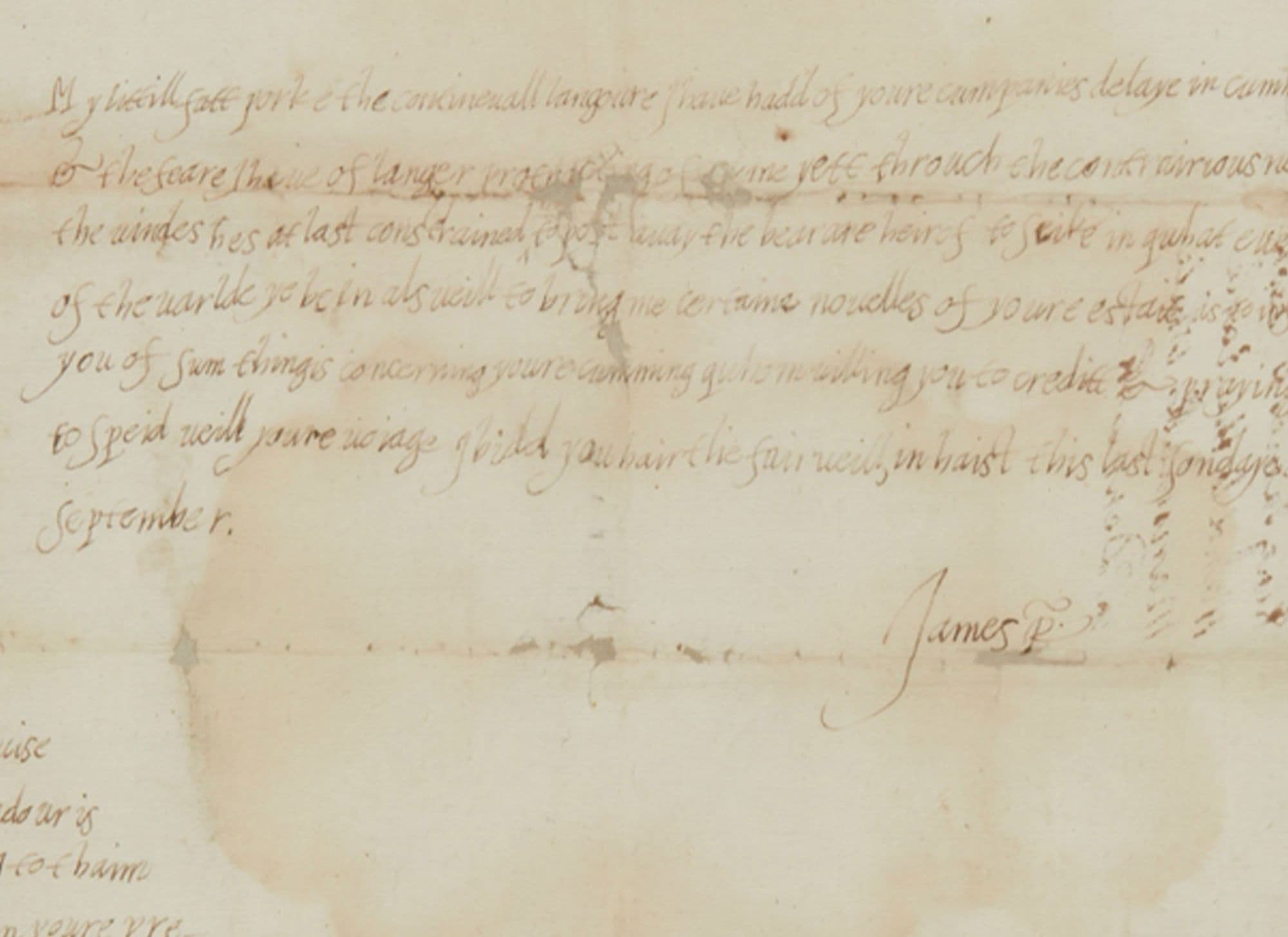 A letter written by James VI and I in the autumn 1589 while waiting anxiously for news of his bride is one of the highlights of Lyon & Turnbull’s Rare Books, Manuscripts, Maps & Photographs sale on 07 February 2024. The first letter written entirely in his hand to come to auction in over 50 years, it is accompanied by a selection of important documents from key figures at the court of his predecessor Elizabeth I.