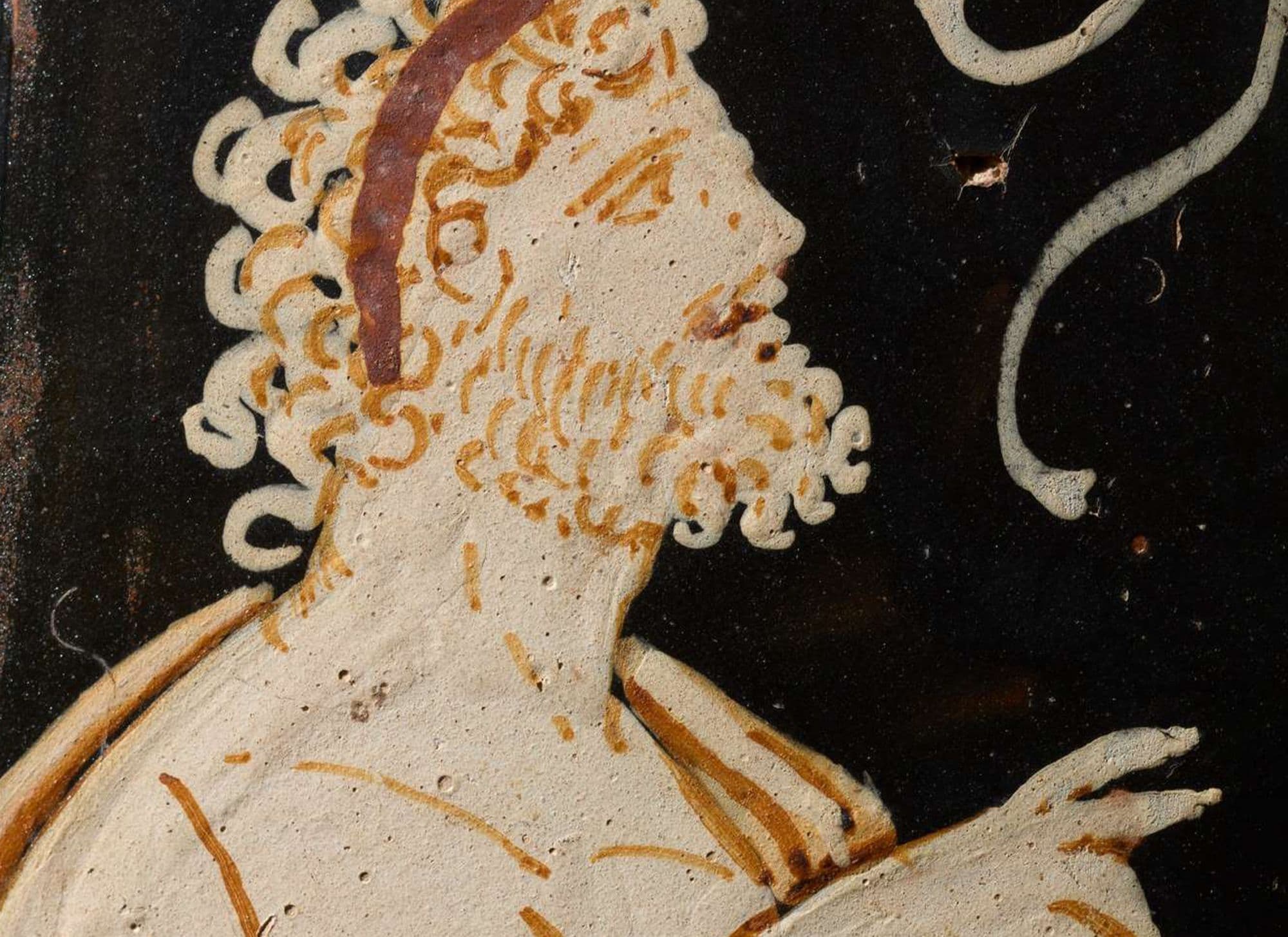 Born around 70 AD, Pompeia Plotina assumed the role of empress consort when Trajan rose through the ranks of the Roman military to become emperor in 98 AD. Known to embrace a life of simplicity and modesty, eschewing the trappings of power and luxury often associated with imperial life, she continued to be revered following Trajan's death in 117 AD. She was shown here as an idealised beauty with an elaborate coiffure and corkscrew fringe and a palla or mantle draped over the back of her head and the shoulders.