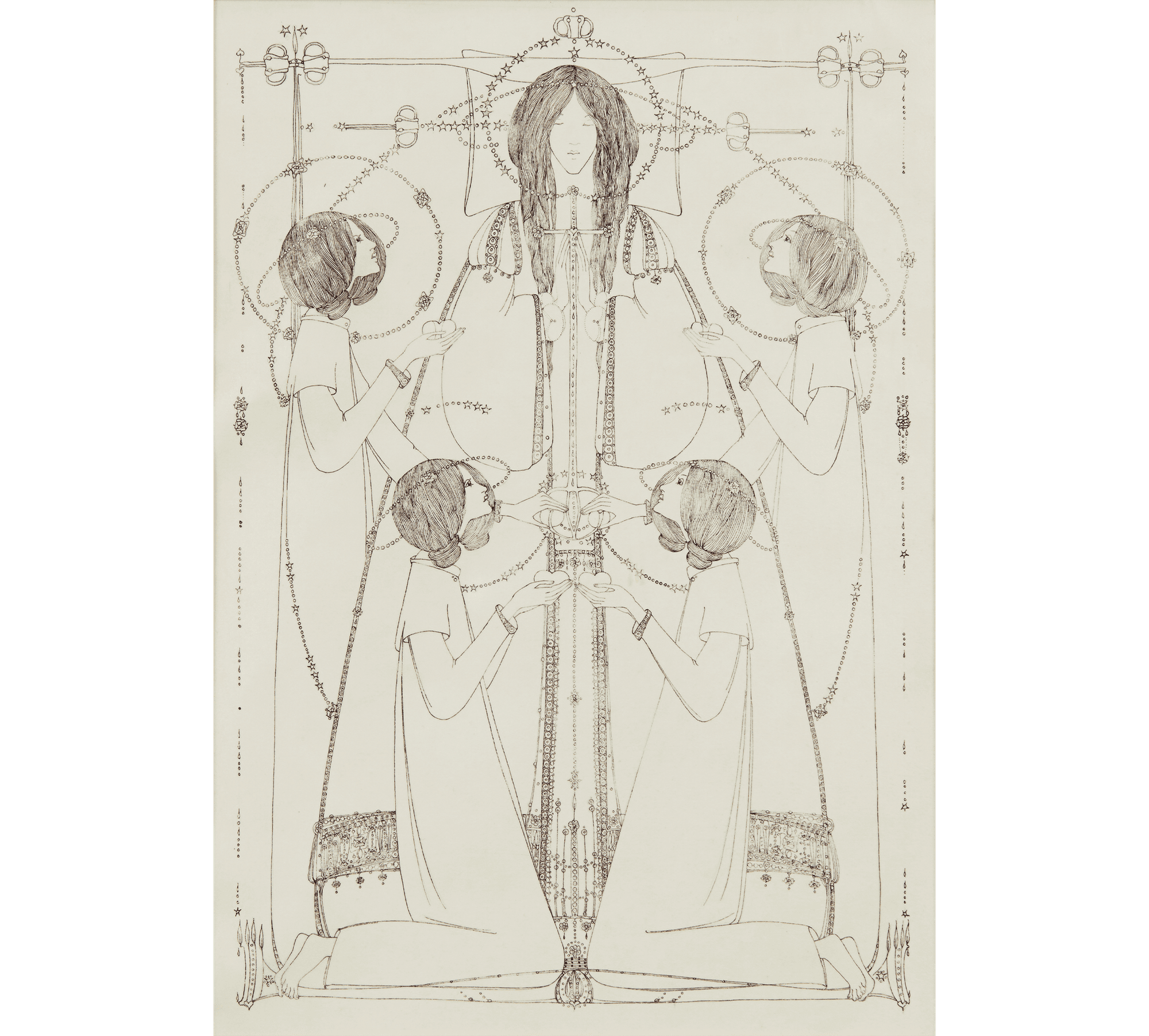 This April, we are delighted to present an enticing selection of work by King in our DESIGN Since 1860 auction, including the remarkable Art Nouveau drawing that was the frontispiece design for ‘L’Evangile de L’Enfance’.