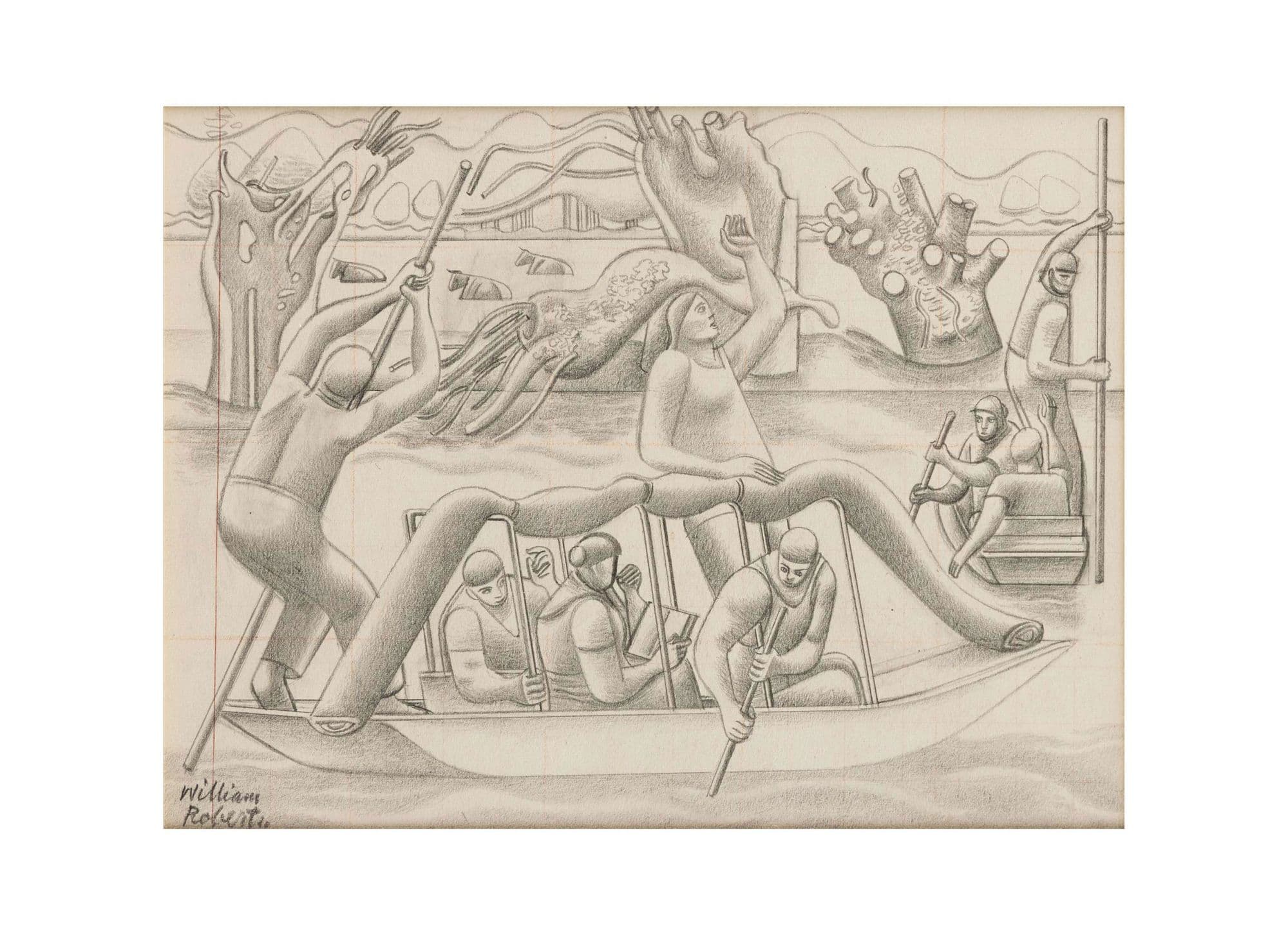 Ennui may well depict a scene beside Regent’s Canal in London, which the artist could access from his garden and on which he and his family enjoyed rowing. Scenes observed during regular walks around Camden Town and Regent’s Park were worked up from quick sketches to squared and precise drawings to finished paintings in the studio. As the current work demonstrates, detail was kept to a minimum, form was simplified and the human figure was rendered with a tubular solidity which has been related to the approach of Cubist Masters including Pablo Picasso, Georges Braque and Fernand Léger (see Simon Martin, op.cit., p.16).